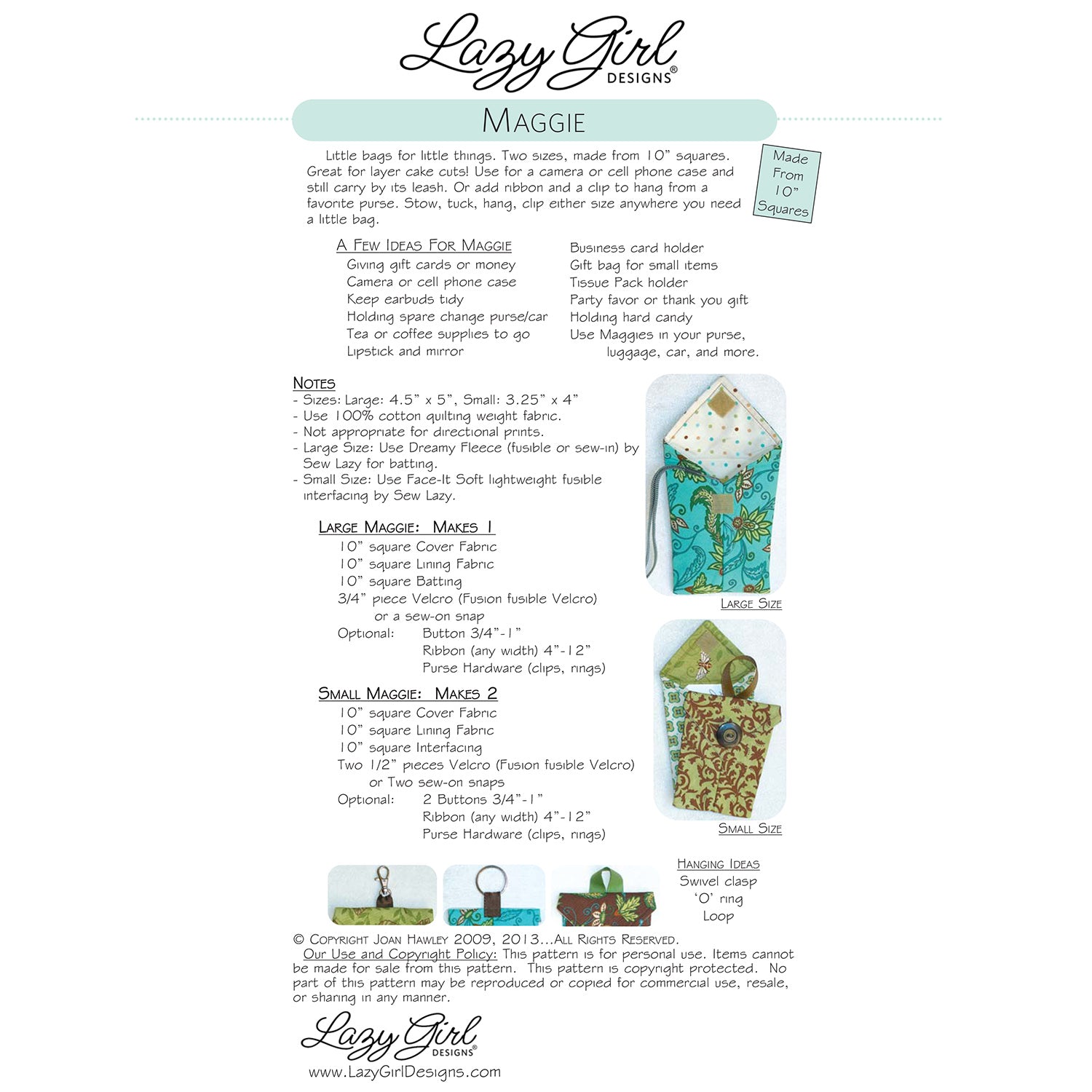 The Maggie pattern is in PDF format and is 6 pages. There are 4 pages of cover/instructions and 2 pages of pattern pieces.