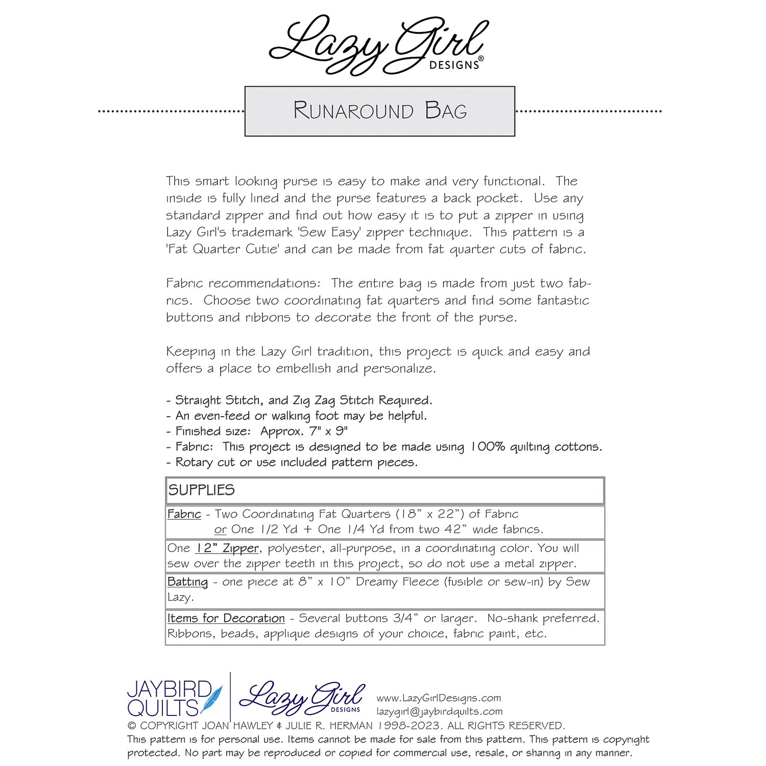 Runaround Bag PDF Pattern